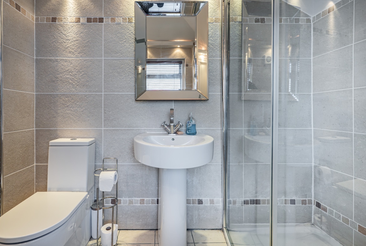 At half-landing level, there is a beautifully finished contemporary shower room. The main upper landing leads to two generously proportioned double bedrooms, both benefiting from open aspects. Additional features include double glazing throughout and gas-fired central heating, powered by a combination boiler installed approximately four years ago.