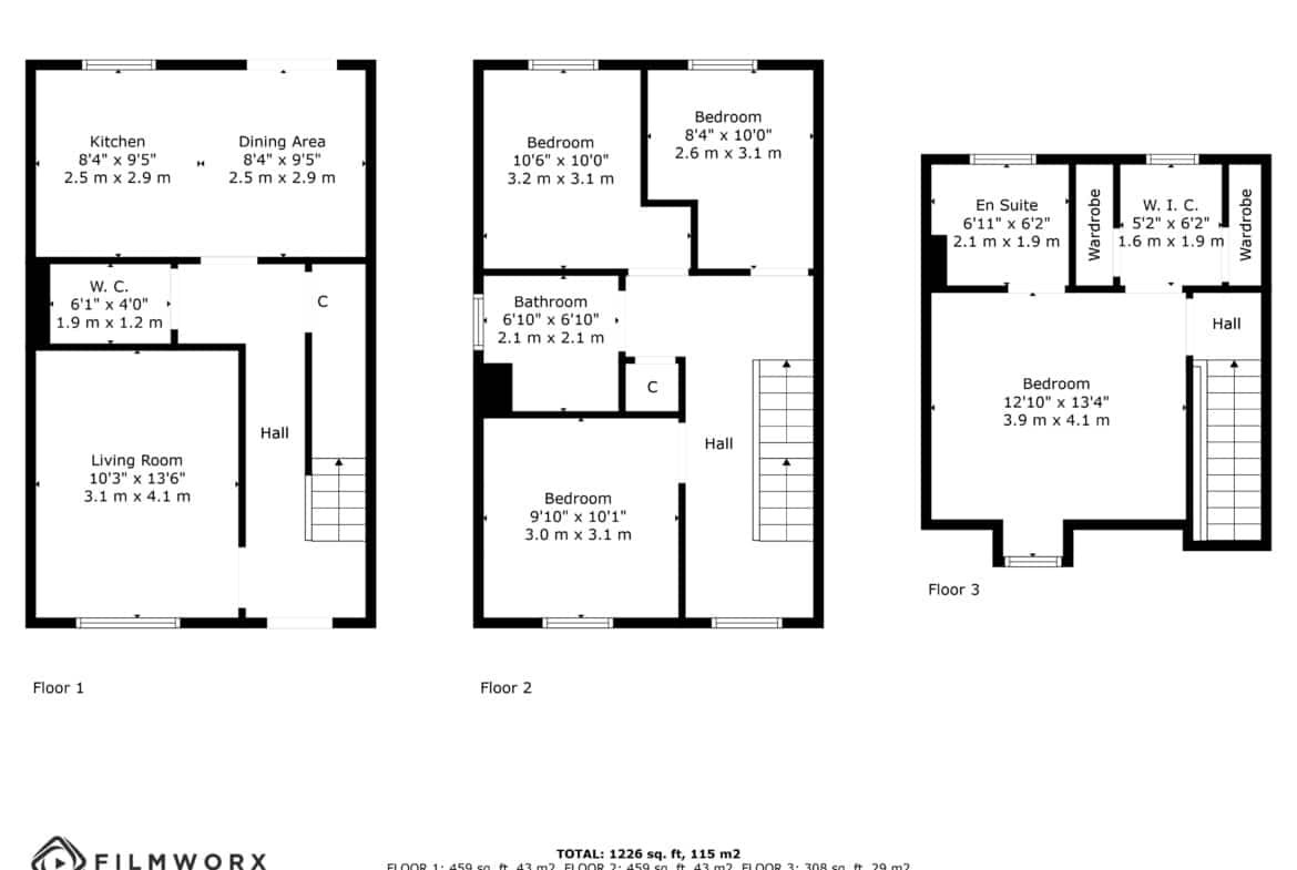 Another staircase takes us to the third floor where you will find an impressive principal suite with large double bedroom, ensuite shower room with shower cubicle, thermostatic shower, toilet, and sink. Completing this modern house is a dressing room off the principal bedroom featuring two wardrobes with bi-fold doors. Gas central heating and double glazing ensure year-round comfort and efficiency.