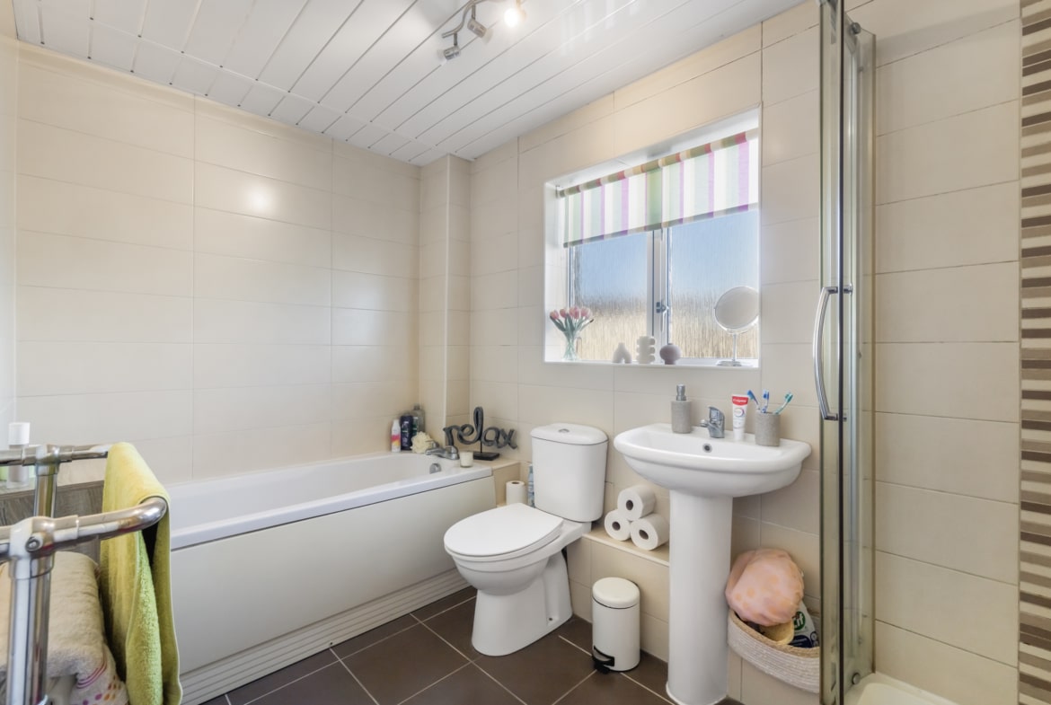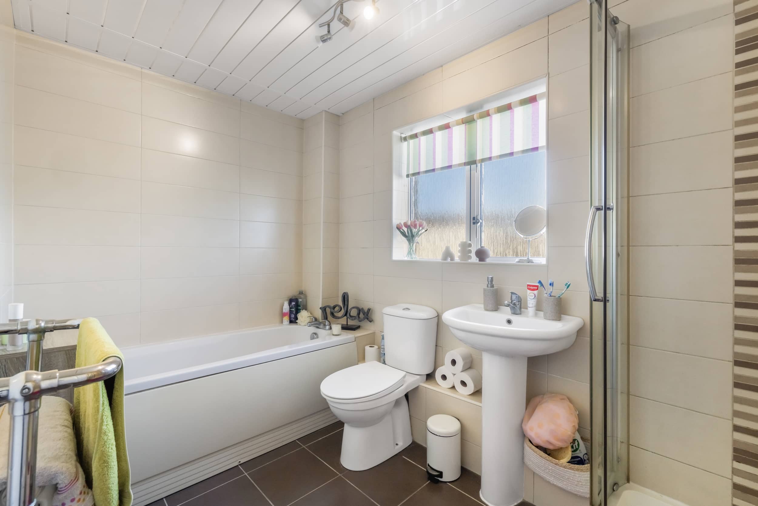 Upstairs the carpeted landing provides access to three double bedrooms and the family bathroom. The principal bedroom is a generously proportion room featuring tasteful décor and built in storage, there is space for a king size bed and freestanding furniture. Bedroom two is positioned to the front of the house and is another sizeable double room, whilst bedroom three enjoys a peaceful garden aspect. The four piece family bathroom boasts a bath, separate shower cubicle, toilet, and sink and completes this great family home. Gas central heating and double glazing provide year-round comfort.
