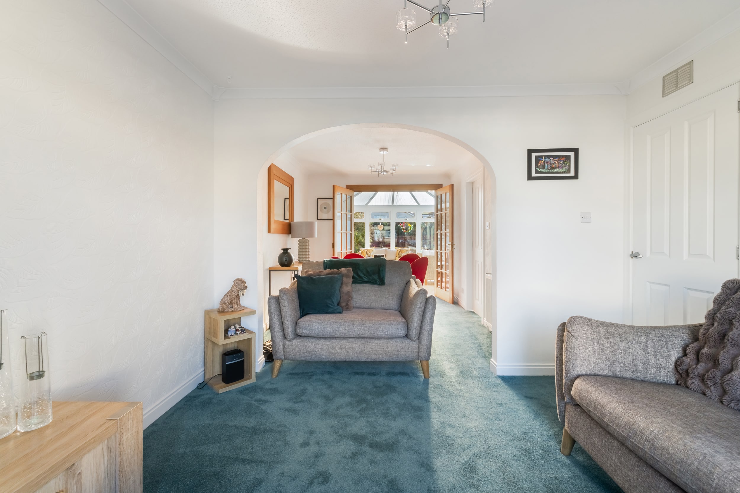 Immediately oozing kerb appeal number 5 Ritchie Place sits back from the road behind an extensive driveway to the side and front providing private off-road parking for several cars. The front door swings open into a welcoming hallway with cloakroom and two storage cupboards and access to the ground floor accommodation. On your left you are drawn into the generously proportioned living room which flows through an archway to dining area. This room has been freshly decorated with plush carpet and a footprint for various furniture configurations including both comfortable living furniture and a dining table and chairs. From the dining area double doors open up to the conservatory which extends the ground floor living area and when open is perfect for social gatherings. The conservatory is the perfect spot to relax and take in the views across the garden.