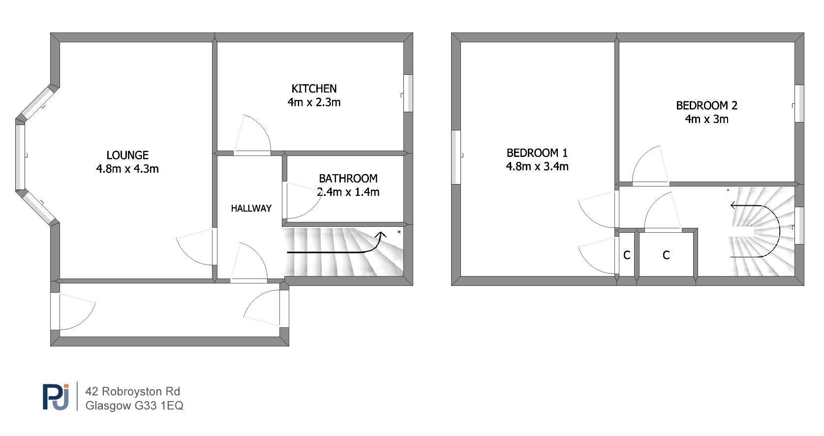 On the first floor, the landing benefits from a window and useful storage cupboard. The principal bedroom is a generous front-facing double room with press-style storage, while the second bedroom is a well-proportioned rear-facing room.